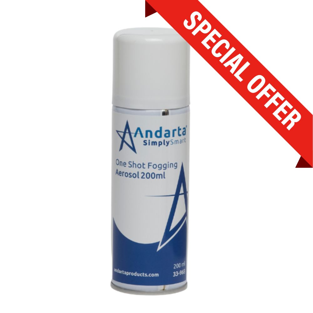 "Andarta One Shot Fogging Aerosol fully conforms to BS EN 1276 AND BS EN 1650 with an alcohol content above 90% giving a clean and fresh fragrance. It is a perfect solution where an area of up to 100m3 needs to be sanitized quickly such-as vehicles, public transport, medical areas and offices.Within 15 minutes, all surfaces will have an anti-bacterial layer and the air would have been sanitized.