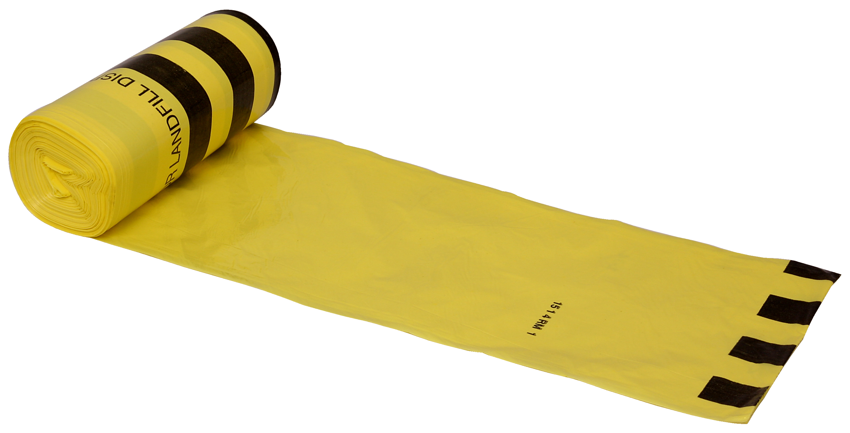 Medium-strength clinical waste sacks from Andarta. Yellow tiger striped design so easily identifiable, ideal for keeping particularly hazardous waste distinct and separate. This product features a star weld seal on all of the gusseted sacks and has 25 sacks per roll. Made from 100% recycled polythene taken from post-consumer waste. A superior tear and puncture resistant bag designed to stretch rather than tear. Fantastic value for money, great quality and at a price that doesn't cost the earth.