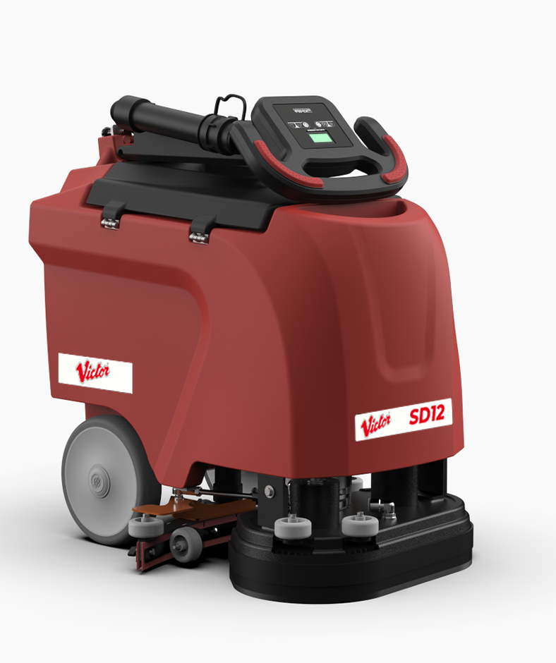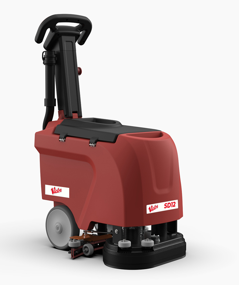 The fold over handle on the SD12 makes it incredibly easy to store in a cleaning cupboard, or fit in the boot of a car. The SD12’s patented 2 brush design is powered by a single motor which offers superior cleaning power. At just 34kg the SD12 is very lightweight without compromising downforce. Although slimline, the SD12 still maintains a 400mm cleaning width. The SD12 has been design to be a quiet as possible and creates just 66.7 decibels of sound.