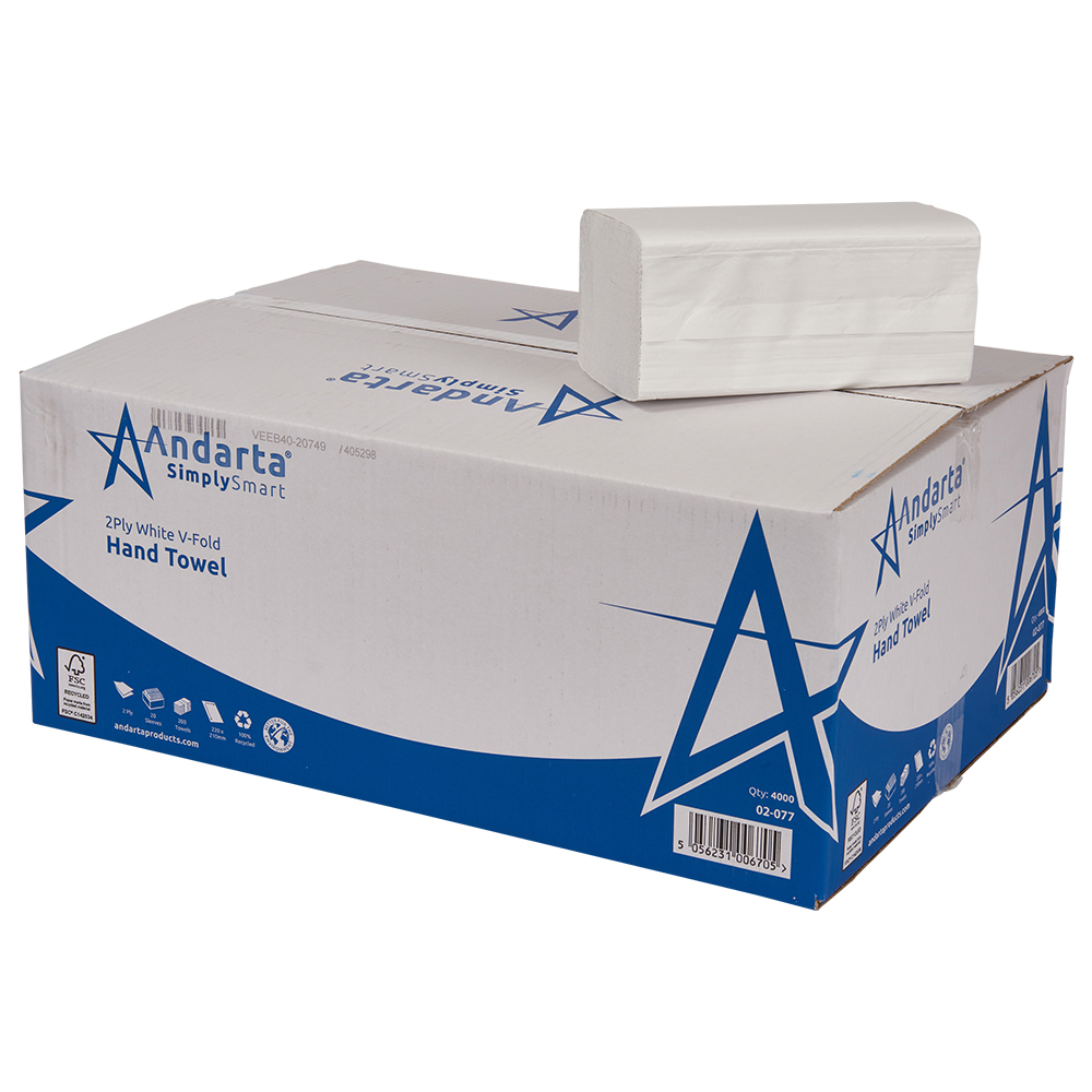 From the Andarta® SimplySmart range, the Andarta® 2 Ply White V/Fold Hand Towel offers a reliable and cost-effective industrial paper towel for everyday hand drying needs.