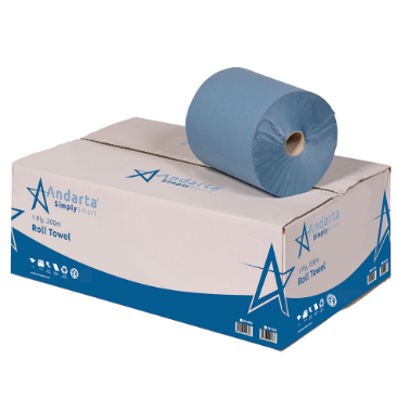 The Andarta 1Ply 200m Blue Roll Towel is tough, strong and fully disposable, designed for areas where basic drying is a must. The embossed paper maximises absorbency, making them idea for locations such as schools, hospitals and care homes.