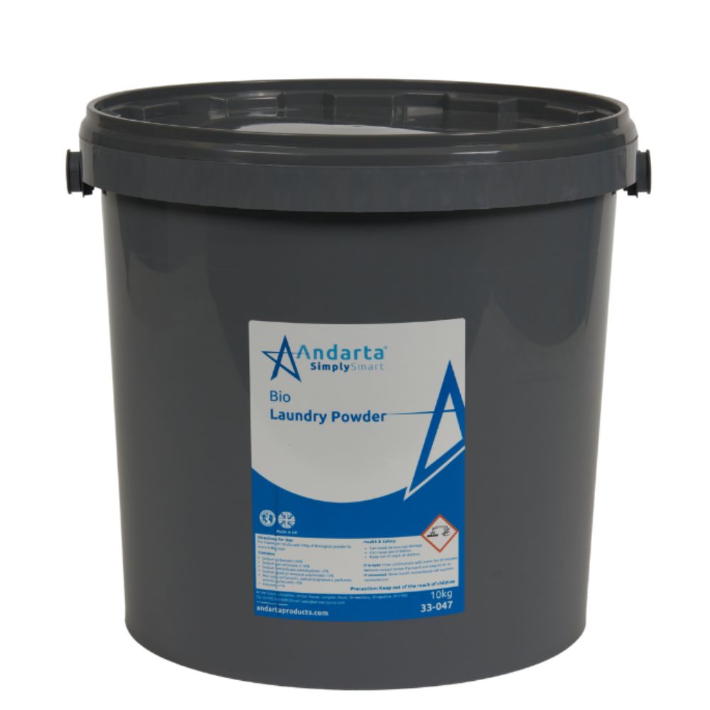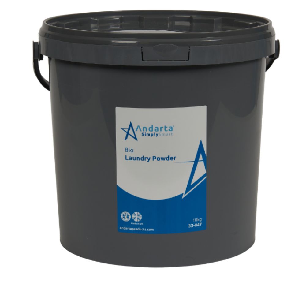 Andarta Biological Laundry Powder has an effective low foam formula suitable for automatic machines or hand washing. Biological washing powders are an excellent choice for tough stain removal in hard or soft water areas and can often be used at lower temperatures than non-biological powders. Andarta biological laundry powder is environmentally friendly and holds its own against more popular brands, combining performance and great value. Sold in 10Kg units.