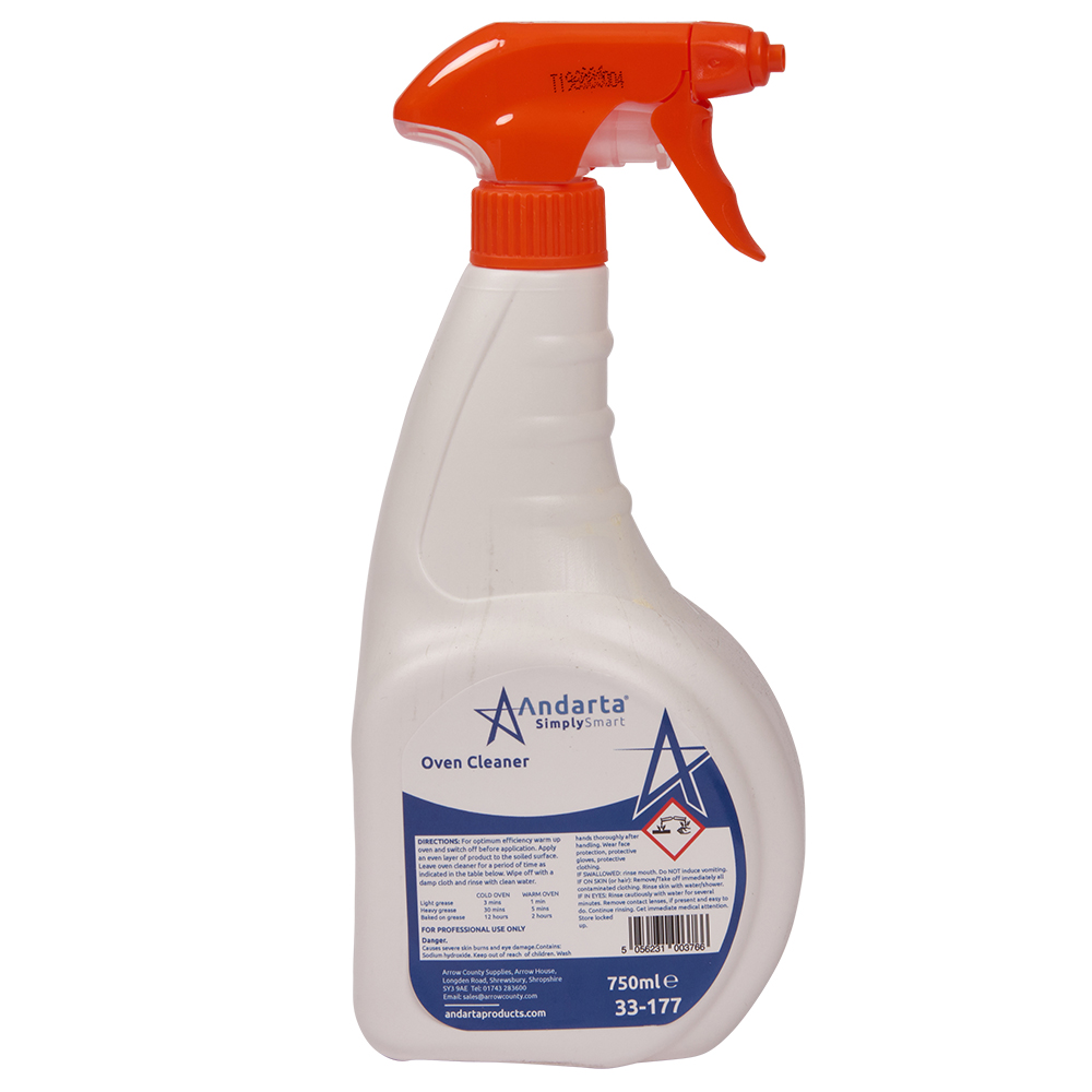 Andarta Oven Cleaner is tough on baked-on food residues, including hard to shift food particles. An oven cleaner that can be used on a variety of warm and cold kitchen surfaces. Ideal for ovens and grills. Andarta products are eco-friendly and the perfect choice for quality, performance and value combined. Compliant with EU Detergent Directive 2005 D 2004/648/EC.