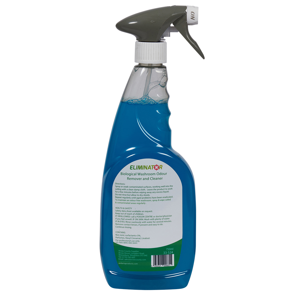 A fantastic product from Eliminator, this non-aggressive cleaning chemical is for use on porous washroom surfaces and to treat sewerage systems. Through the introduction of good microorganisms in the solution, the cleaner produces enzymes that feed on the problematic organic matter. It effectively degrades organic soiling and completely eradicates stains and odours. Comes as a 750ml spray nozzle bottle for easy and accurate application of the solution to target areas.