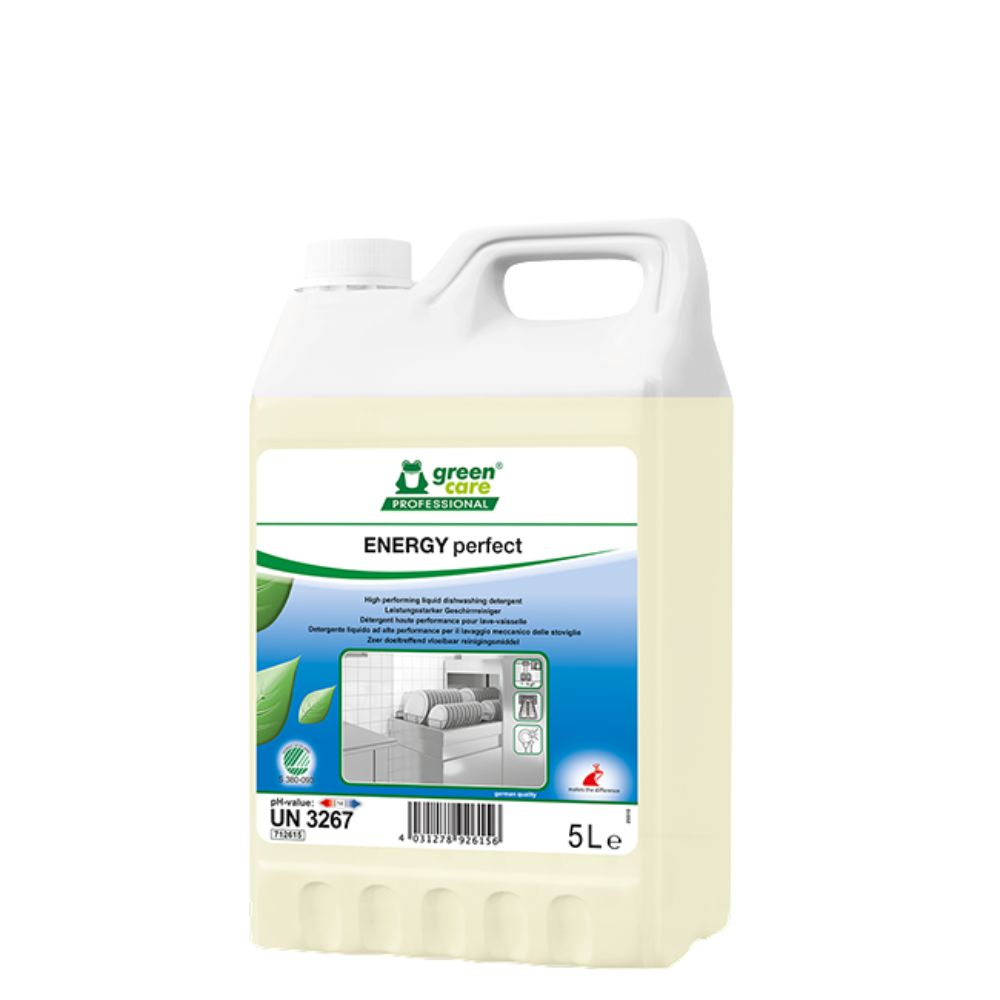 Green Care ENERGY perfect is an innovative sustainable complexing system preventing lime scale deposits. Whilst enhanceing the work safety, it ensures an intensive and powerful cleaning of dishes via a perfect grease and stain removal. It has a highly concentrated formula for low dosing and is ideal for use in soft to middle hard water. It is majorly composed of renewable resources, ensuring ENERGY perfect takes on the responsibility for future generations.
